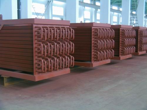 鋼管式省煤器不受壓力限制,可以用作沸騰式,一般由外徑為32~51毫米的碳素鋼管制成。有時在管外加鰭片和肋片,以改善傳熱效果。鋼管式省煤器由水平布置的并聯(lián)彎頭管子(習(xí)稱蛇形管)組成。